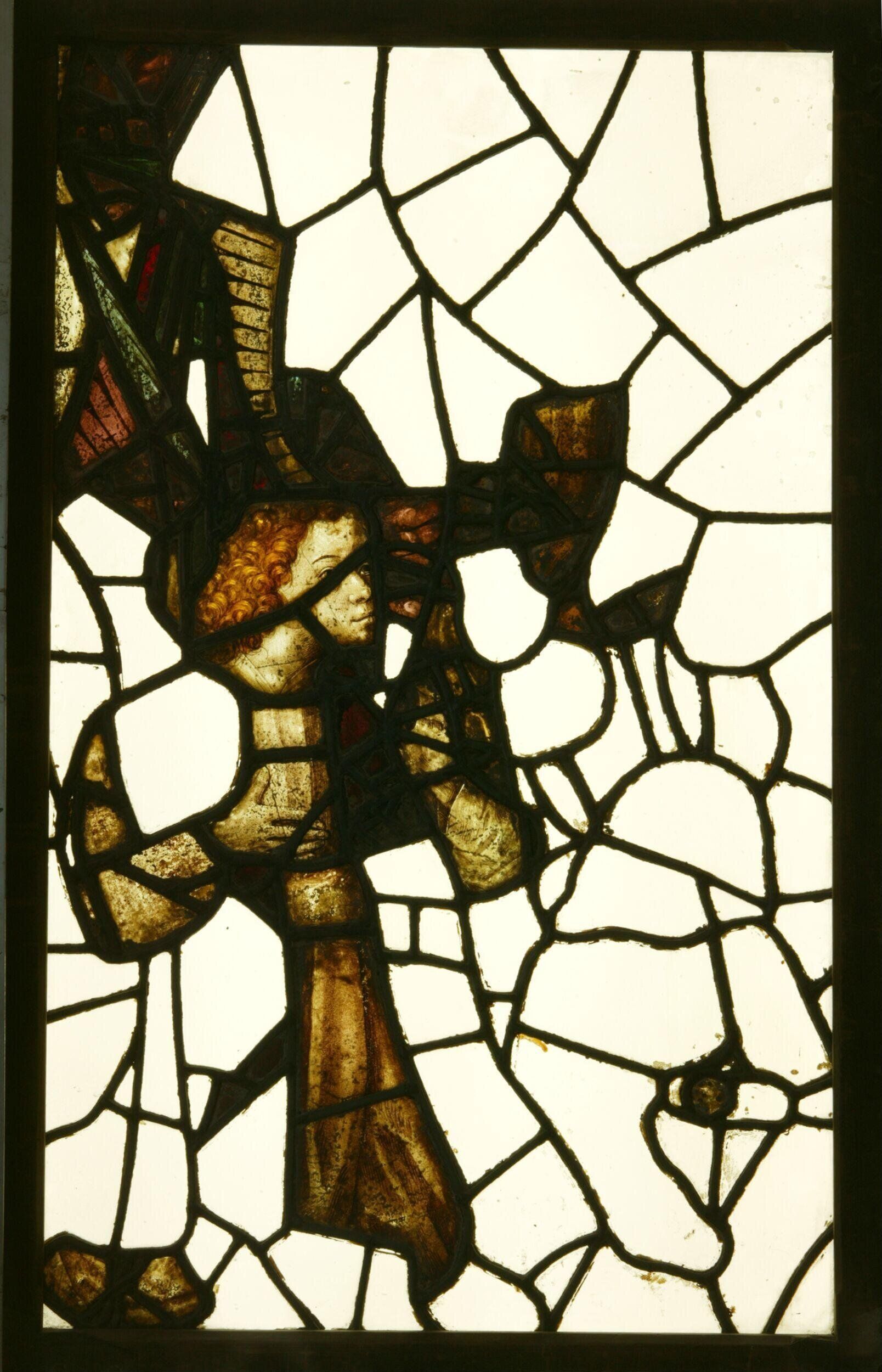 Stained glass I stared at for a long time at the V&A–the sign interpreting it said the angel was probably depicting “the angel of the last judgment”: